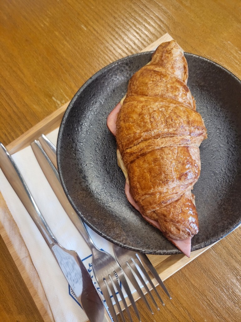 아침 겸이라 시킨 햄치즈 크로와상