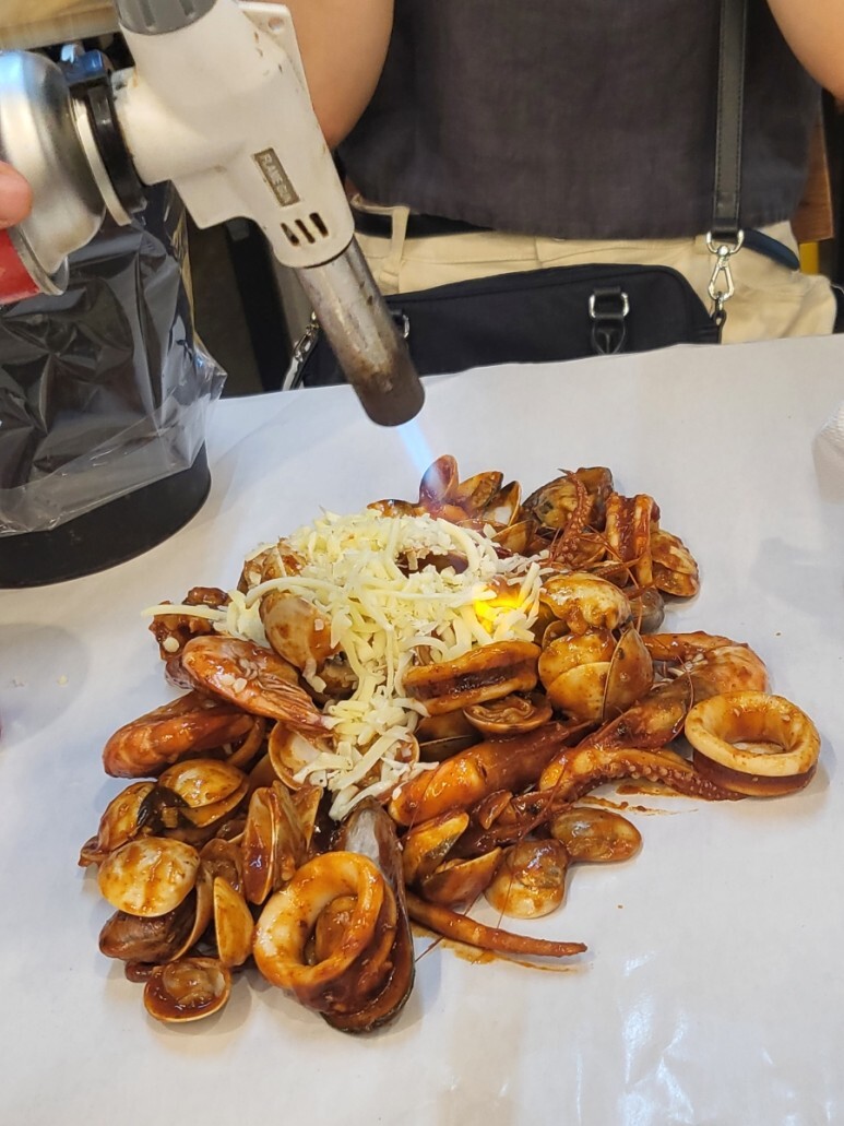 치즈 추가했더니 위에 치즈 올리고 토치로 구워준다.